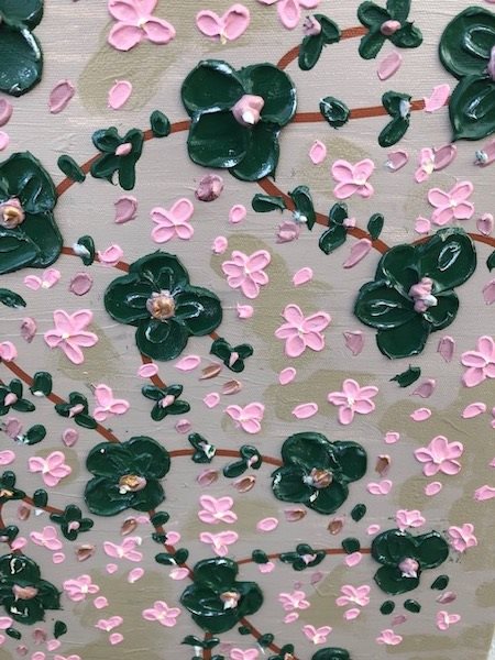Blomsterne vælter ud i alle størrelser og da de er malet med struktur ser mere levende ud fordi de er fremhævet.