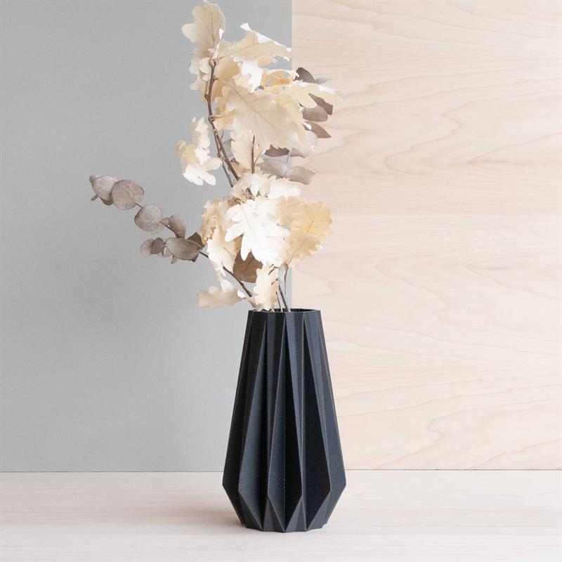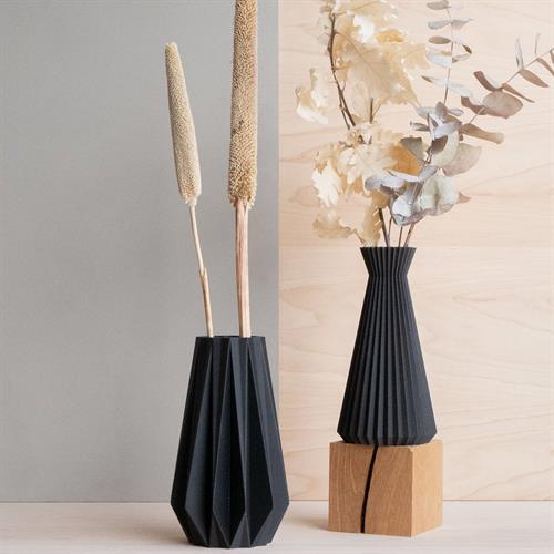 BESKRIVELSE Bring et strejf af originalitet til dit interiør med denne designer origami vase trykt i træ, som fremhæver og forbedrer dine planter og tørrede blomster. Dens rene linjer og materiale vil bringe en naturlig, zen, skandinavisk og original side til dit interiør, men gør den også til en original gave at give til dine kære!