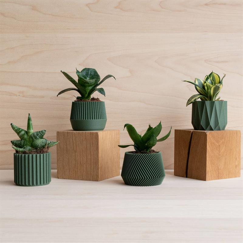 Bryd med det sædvanlige og tilføj et moderne præg til din boligindretning med disse små geometriske og minimalistiske krukker, perfekte til sukkulenter og kaktusser, fremstillet i grønt trælook. Deres rene linjer og materialevalg giver et naturligt, zen, moderne og unikt udtryk til dit hjem.