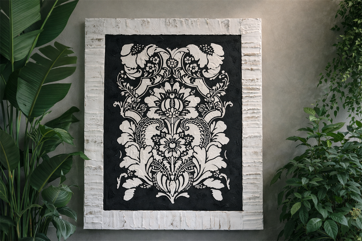 Utrolig dekorativt Relieff billede, som er lavet i forskellige materialer, der givet et smukt, dekorativt